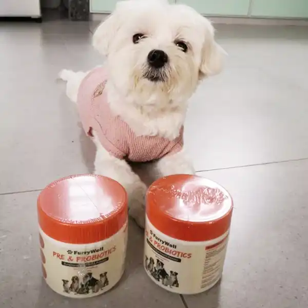 Research has shown that probiotics are beneficial for gut health, aiding in digestion, improving nutrient absorption, enhancing immune function, managing diarrhoea, constipation, improving skin health and so much more. All of this can be found in a tub of FurryWell’s Pre & Probiotic Supplement!